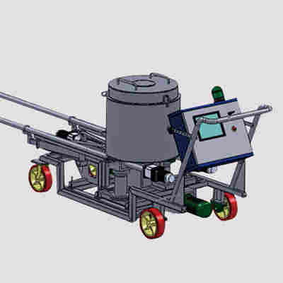系统由给料小车、给料筒、摆臂及给料电机、摆臂传动装置、PLC及控制设备组成。 2.给料筒是保护渣盛放的装置,保护渣预先盛放在给料筒中,经由给料器均匀的输出。给料筒设有料位高低限报警接点。 3.摆臂和给料电机形成给料和输送装置,保护渣经由电机控制的螺旋给料器,均匀的传输到摆臂前端的布料口,对结晶器布料。 4.PLC及控制设备对加渣机的加渣速度、运行方式、控制模式进行调节和控制,实现多种控制模式和控制速率。 5.摆臂传动装置根据不同结晶器的尺寸,控制住摆臂往复运动,使渣料均匀的布置到结晶器内。